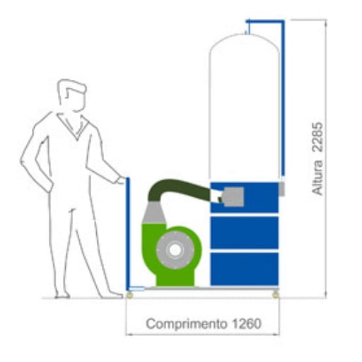 • O Coletor de pó é um conjunto de exaustão portátil composto de exaustor centrífugo, recipiente cilíndrico, manga filtrante, estrutura metálica com rodízios (carrinho), chave elétrica de acionamento com proteção, dutos flexíveis e acessórios.