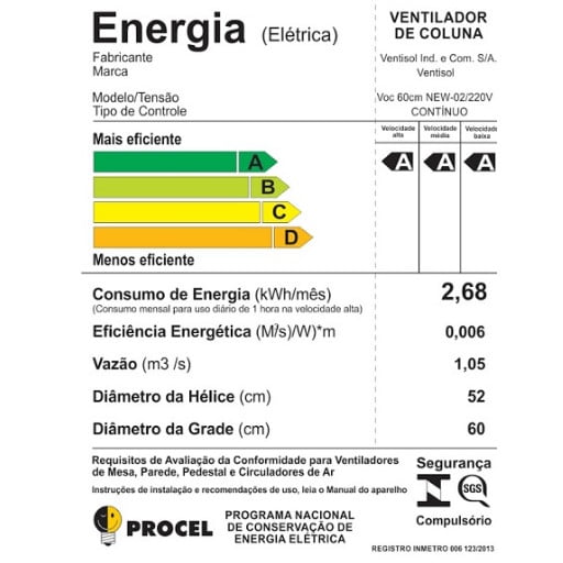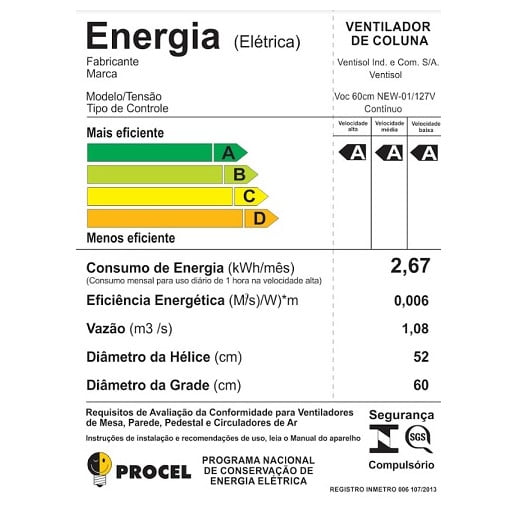 EconômicoSelo Procel Inmetro A, A, A.